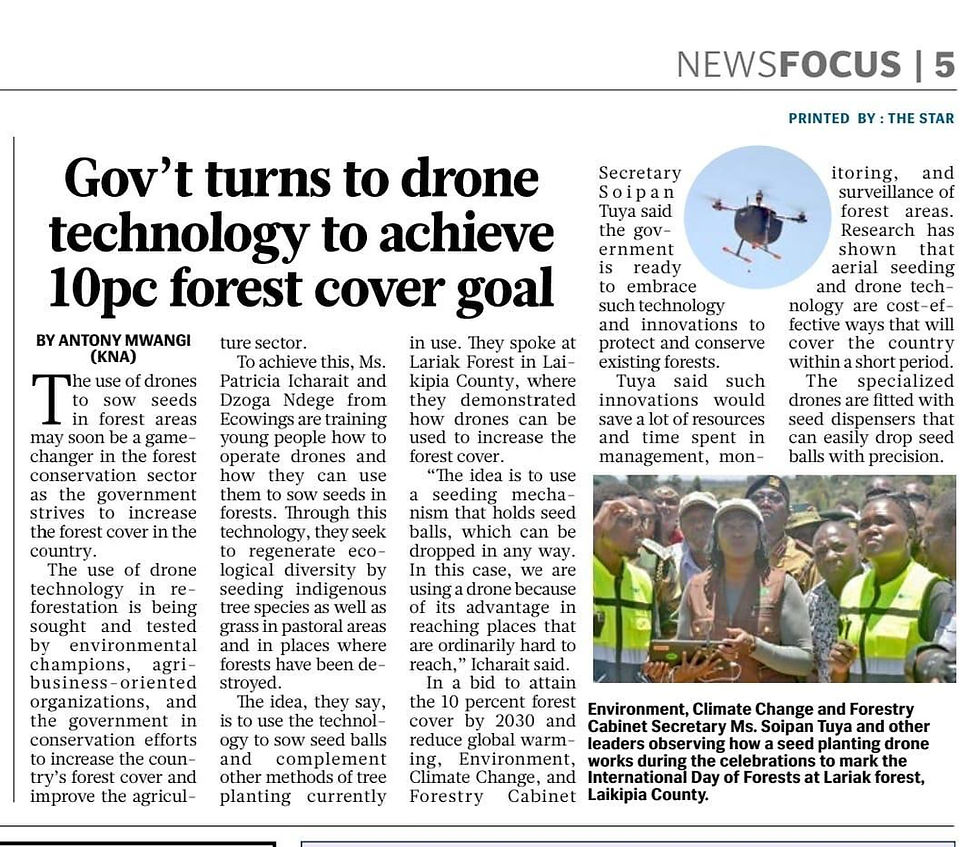 Government turns to drone technology to achieve 10% forest cover goal (Which can be dropped in any way) - (WHICH CAN BE DROPPED WITH POINT-TO-POINT PRECISION) Timothy BarakaJul 29, 20240 min readUpdated: Jan 18, 2025